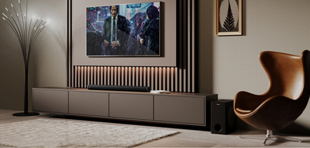 Además de su diseño, también podrá mantener un ambiente limpio y ordenado gracias a que su subwoofer es inalámbrico, por lo que representa menos cables a la vista.