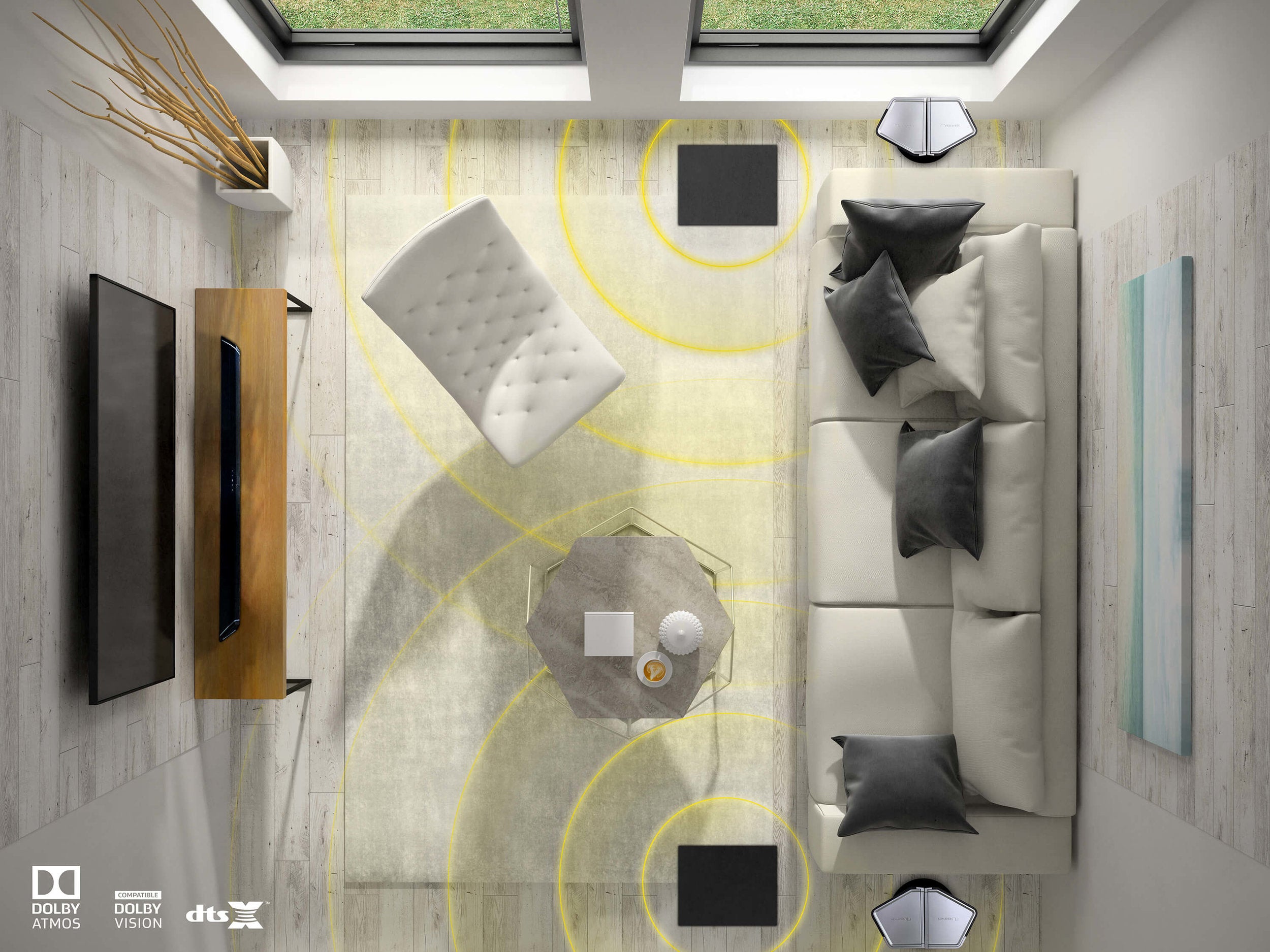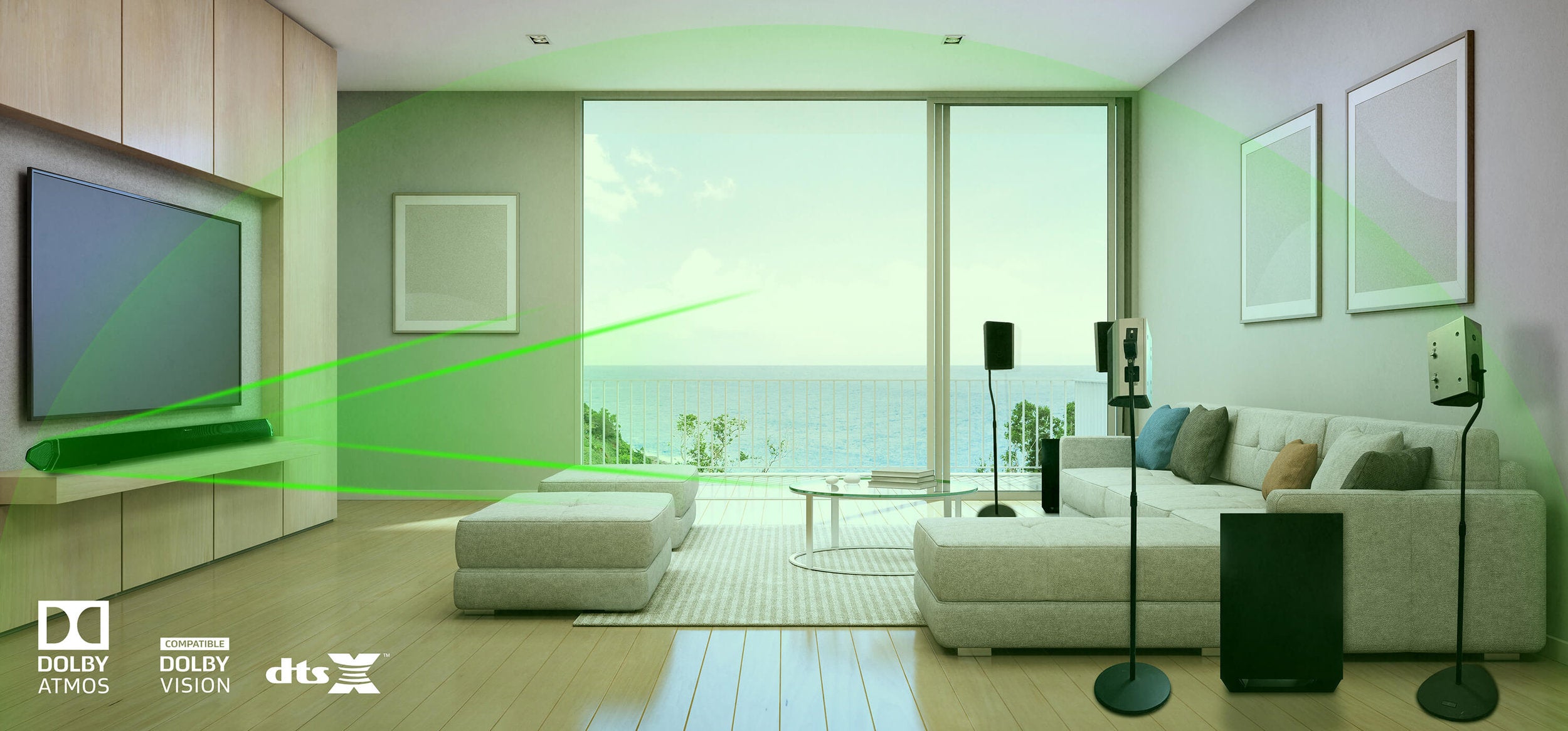 Una arquitectura de última generación que combina hardware acústico nuevo y actualizado y software propietario para transformar el contenido de películas, música y juegos en la experiencia más inmersiva de 360°.