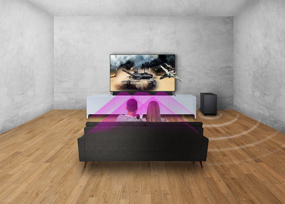 Que junto a nuestros revolucionarios parlantes de 2 vías y tweeters de efectos envolventes brindan un escenario sonoro un 35% más amplio lleno de detalles envolventes dinámicos con potencia y precisión para un cine en casa más inmersivo.