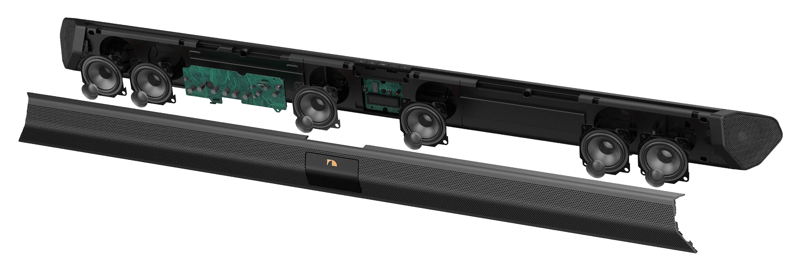 Nuestra barra de sonido completamente mejorada cuenta con controladores de doble cono de rango extendido diseñados a medida, tweeters de efectos envolventes de cúpula de seda y amplificadores de alto rendimiento para brindar un sonido suave, potente y nítido en todo su sistema de cine en casa.