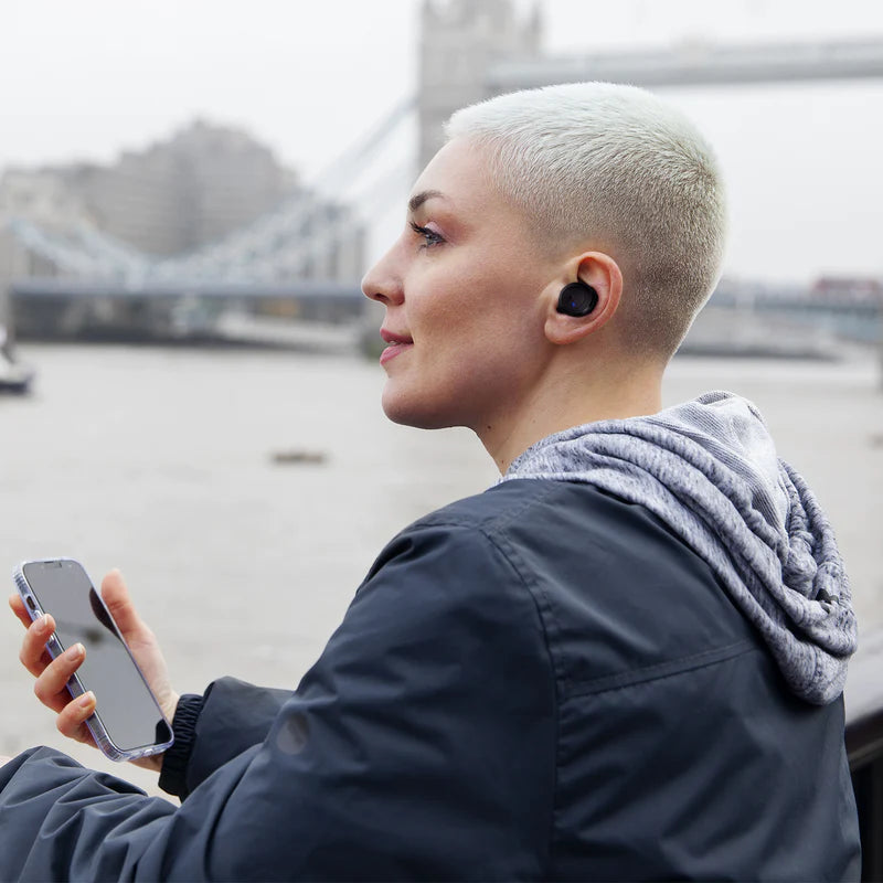 Potentes auriculares extremadamente portables y a tu medida para escuchar música como lo desees. Estos fantásticos Earbud pueden usarse individualmente o en su conjunto, y el emparejamiento puede darse independientemente de cuál se extraiga primero del estuche.