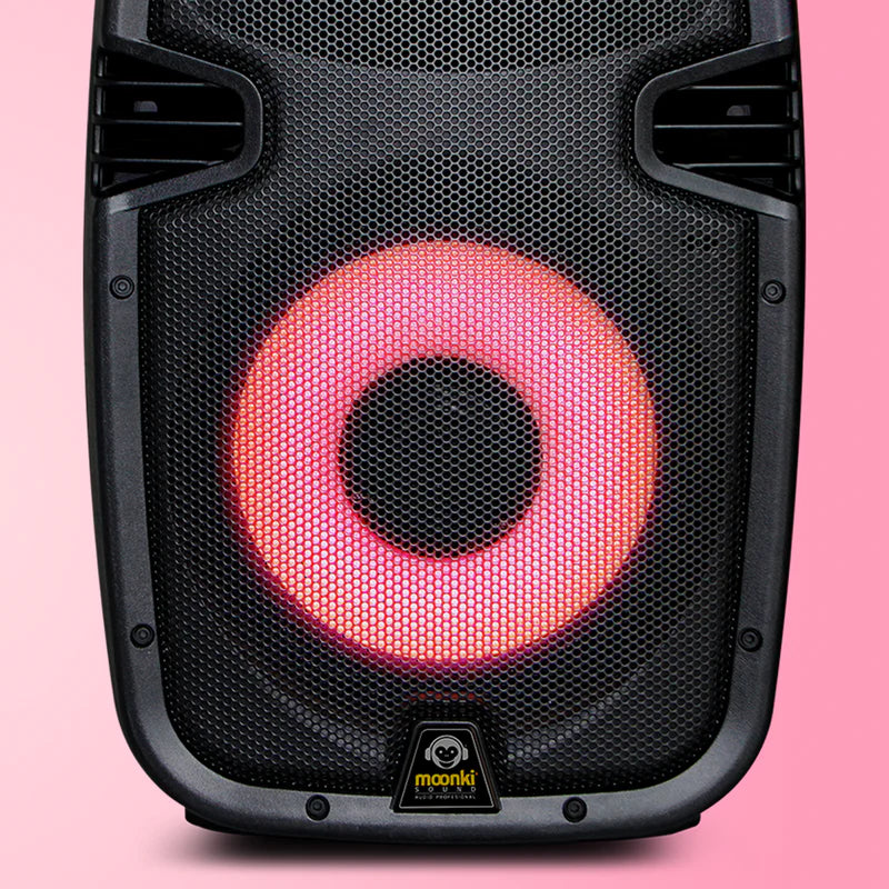 El Moonki Sound MS-1600B es un parlante activo con conectividad Bluetooth. Sus múltiples características sobresalientes lo vuelven único entre los Speakers semi-profesionales. Si querés podés cantar a dos voces: cuenta con doble entrada de micrófono de 6.5mm (incluyendo el micrófono metálico con cable) más entrada y salida RCA.
