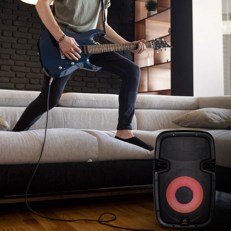 La conectividad inalámbrica Bluetooth permite disfrutar de extendidos tiempos de reproducción sin cortes abrutos ni interrupciones en la transmisión. Pero también, concediendo oportunidades inagotables de escucha, creación y reproducción musical, este Speaker cuenta con dos entradas de micrófono de 6.5 mm, más entrada y salida de RCA.