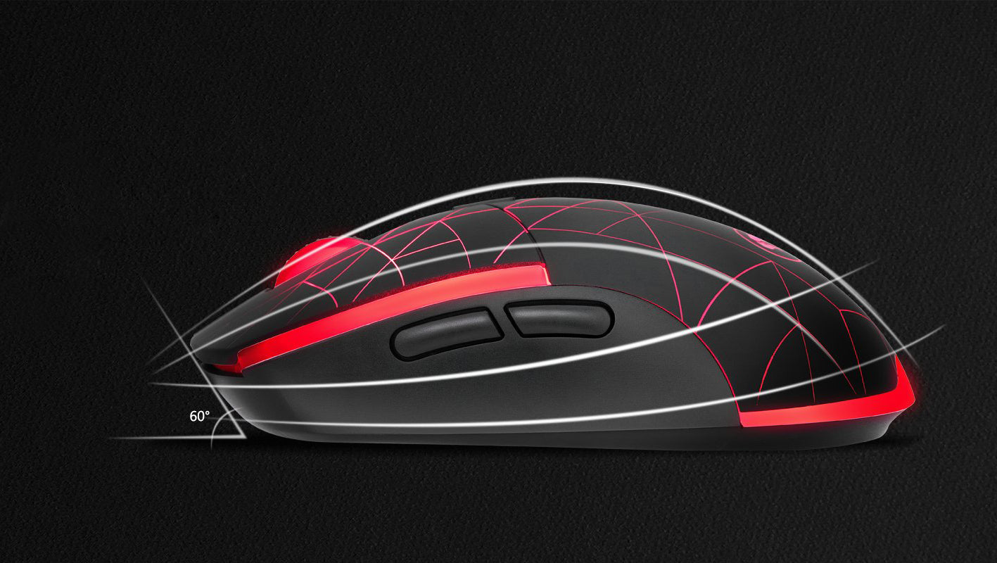 El Marvo M115 ha sido desarrollado pensando en la comodidad y la ergonomía. Su forma se adapta naturalmente a la mano, ofreciendo un agarre firme y estable que evita la fatiga durante largas sesiones de uso. Con un peso de solo 85 gramos y unas dimensiones de 125 x 63 x 39 mm, brinda una sensación de ligereza y control que se traduce en movimientos fluidos y precisos. La superficie del mouse presenta un acabado suave y resistente al desgaste, facilitando un deslizamiento cómodo y seguro, mientras que sus laterales ligeramente curvados permiten mantener una postura natural de la mano, evitando tensión en dedos y muñeca.