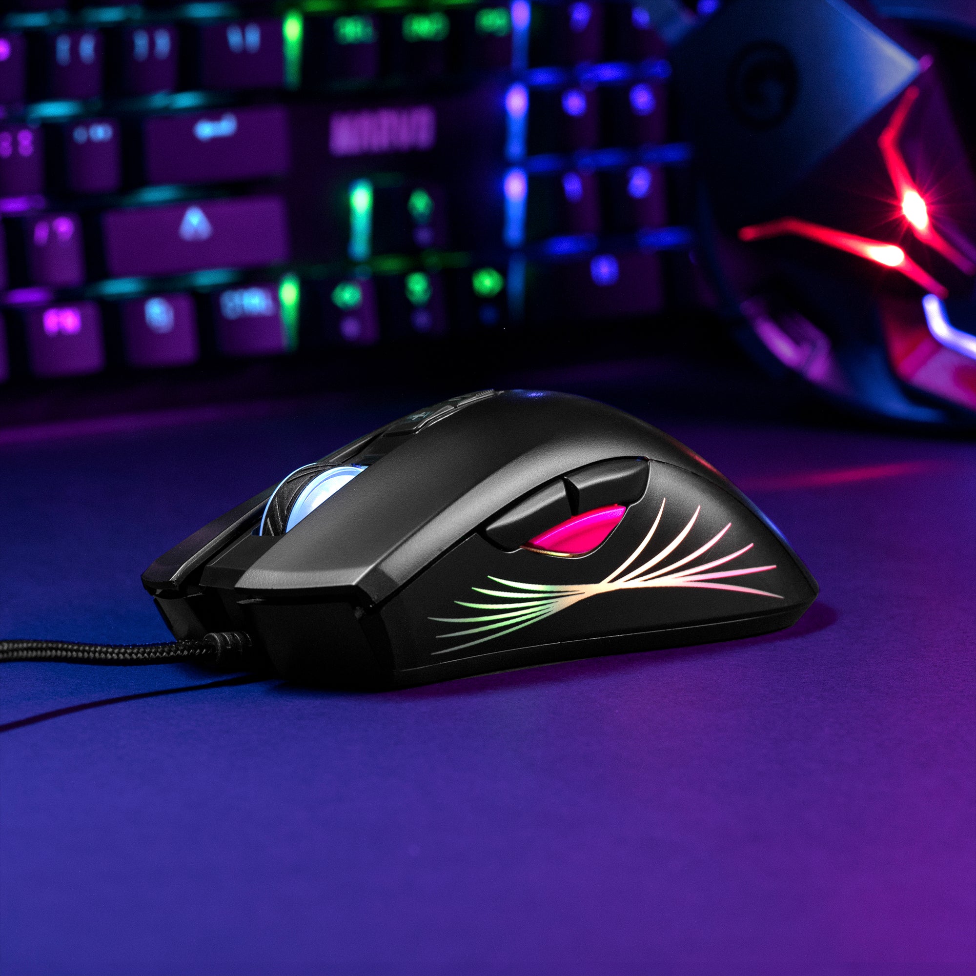Su construcción robusta está acompañada por un cable mallado de 1,5 metros, flexible y resistente al desgaste, que asegura una conexión estable y duradera. La interfaz USB 2.0 garantiza compatibilidad con la mayoría de los sistemas actuales, ofreciendo una transmisión de datos rápida y confiable. Además, su diseño plug and play permite comenzar a usarlo al instante, sin necesidad de configuraciones previas, aunque su software brinda la posibilidad de personalizar cada detalle para sacar el máximo provecho de sus funciones.