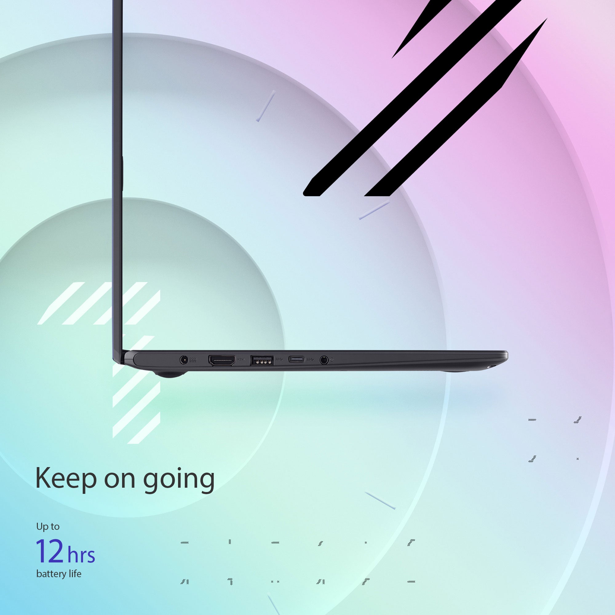 Con ASUS E410KA, puedes dejar el pesado adaptador de corriente en casa. La duración de su batería de un día le brinda la flexibilidad de trabajar o jugar en cualquier lugar.
