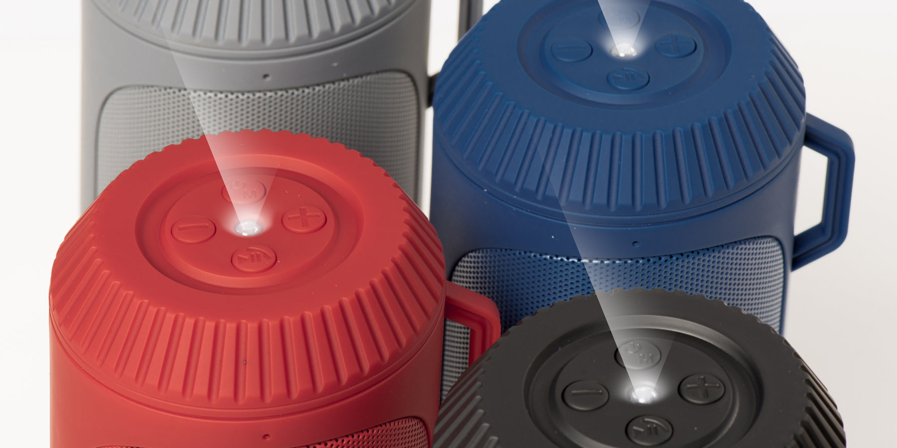 Cada altavoz está equipado con una linterna de emergencia incorporada para mayor funcionalidad.