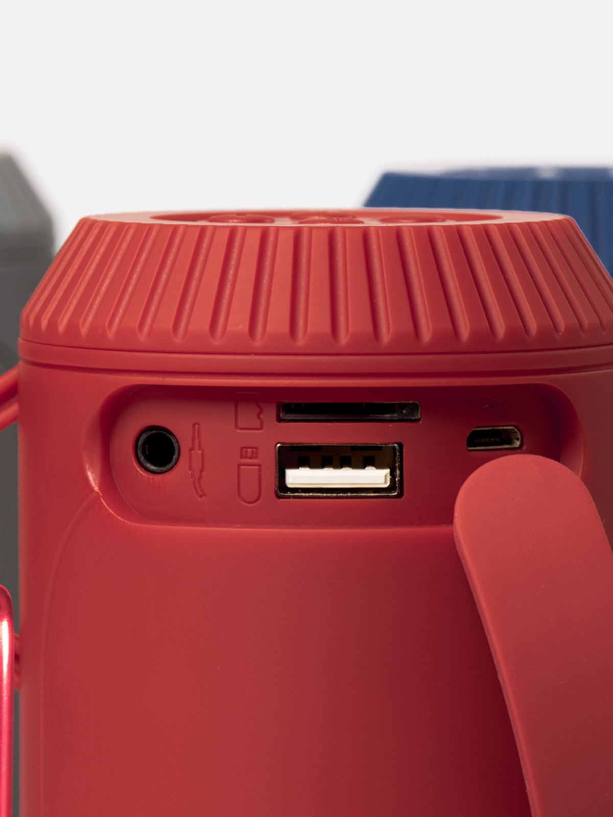 Para una conexión aún más rápida, basta con conectarlo a la entrada auxiliar. Los puertos de memoria USB/SD guardan las baterías y mantienen la fiesta en marcha. La clasificación IPX4 para protección contra salpicaduras de agua debido a la lluvia o pulverización desde cualquier dirección.