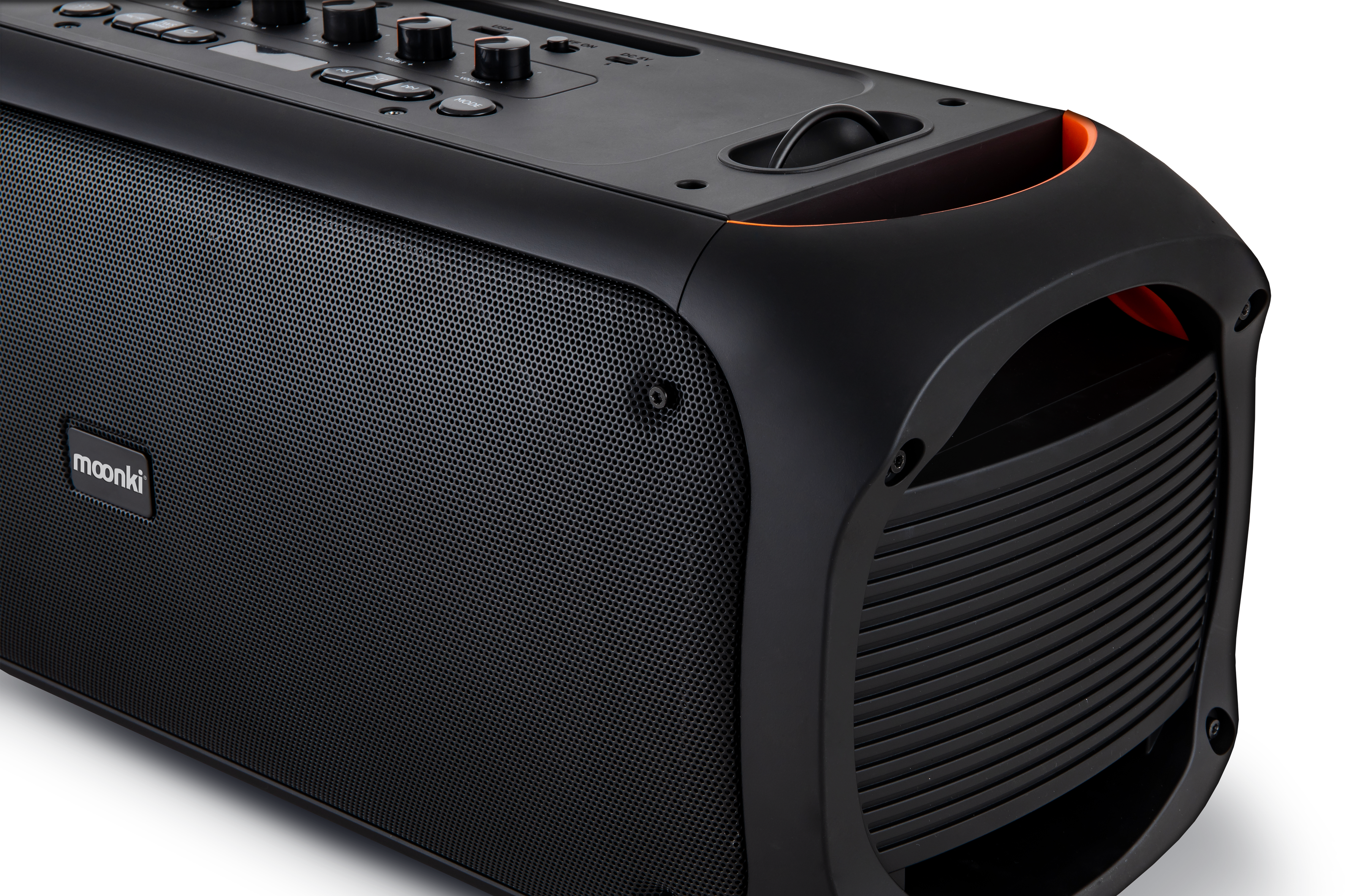 Una de las características más llamativas del MOONKI TRIP es su innovadora iluminación LED en los woofers, que no solo añade un toque estético, sino que también mejora la experiencia visual durante tus celebraciones. Imagina cómo estas luces bailarán al ritmo de la música, creando un ambiente festivo que encantará a tus invitados.