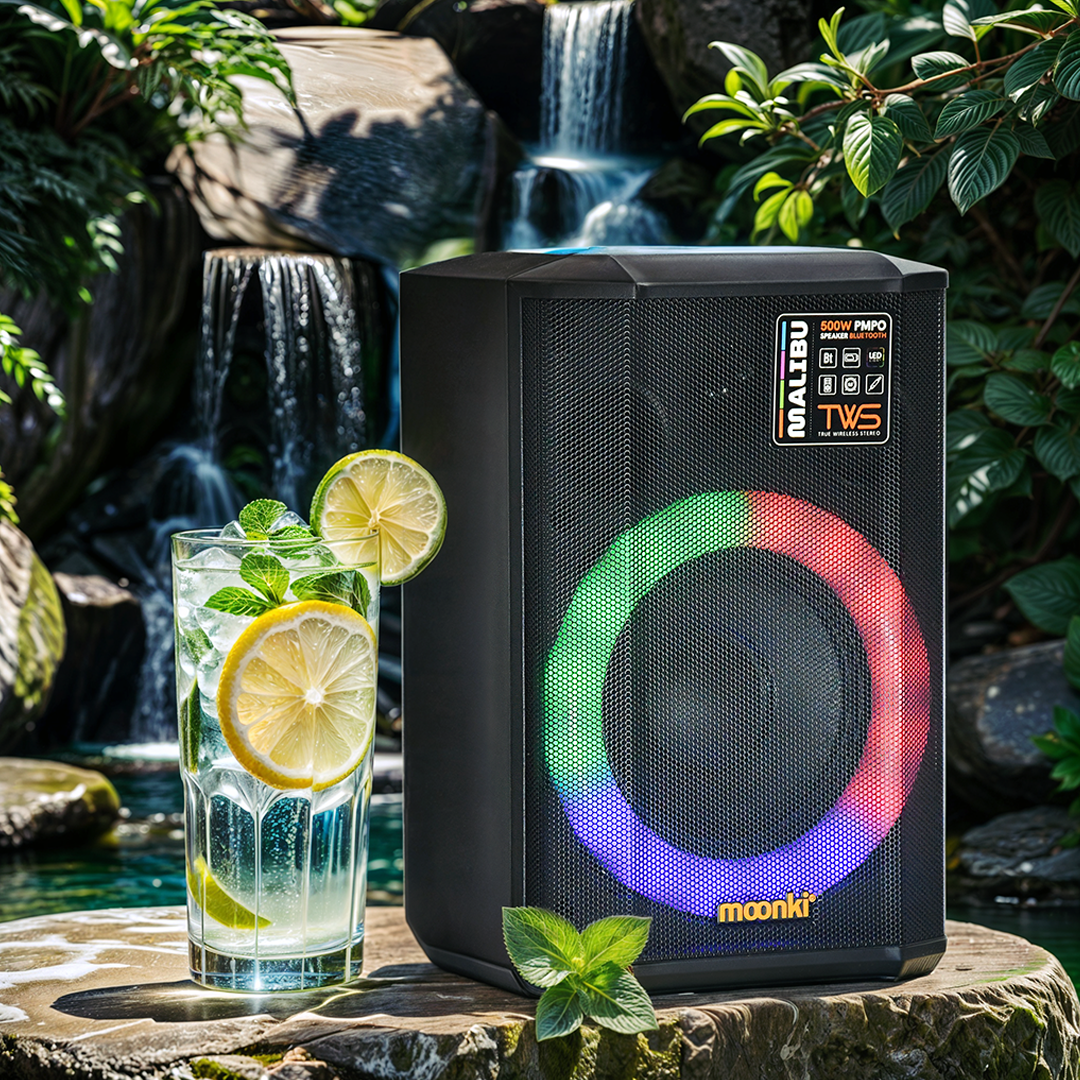 Ya sea que estés organizando una fiesta en casa o disfrutando de una tarde tranquila, el parlante Malibu está diseñado para satisfacer todas tus necesidades auditivas.