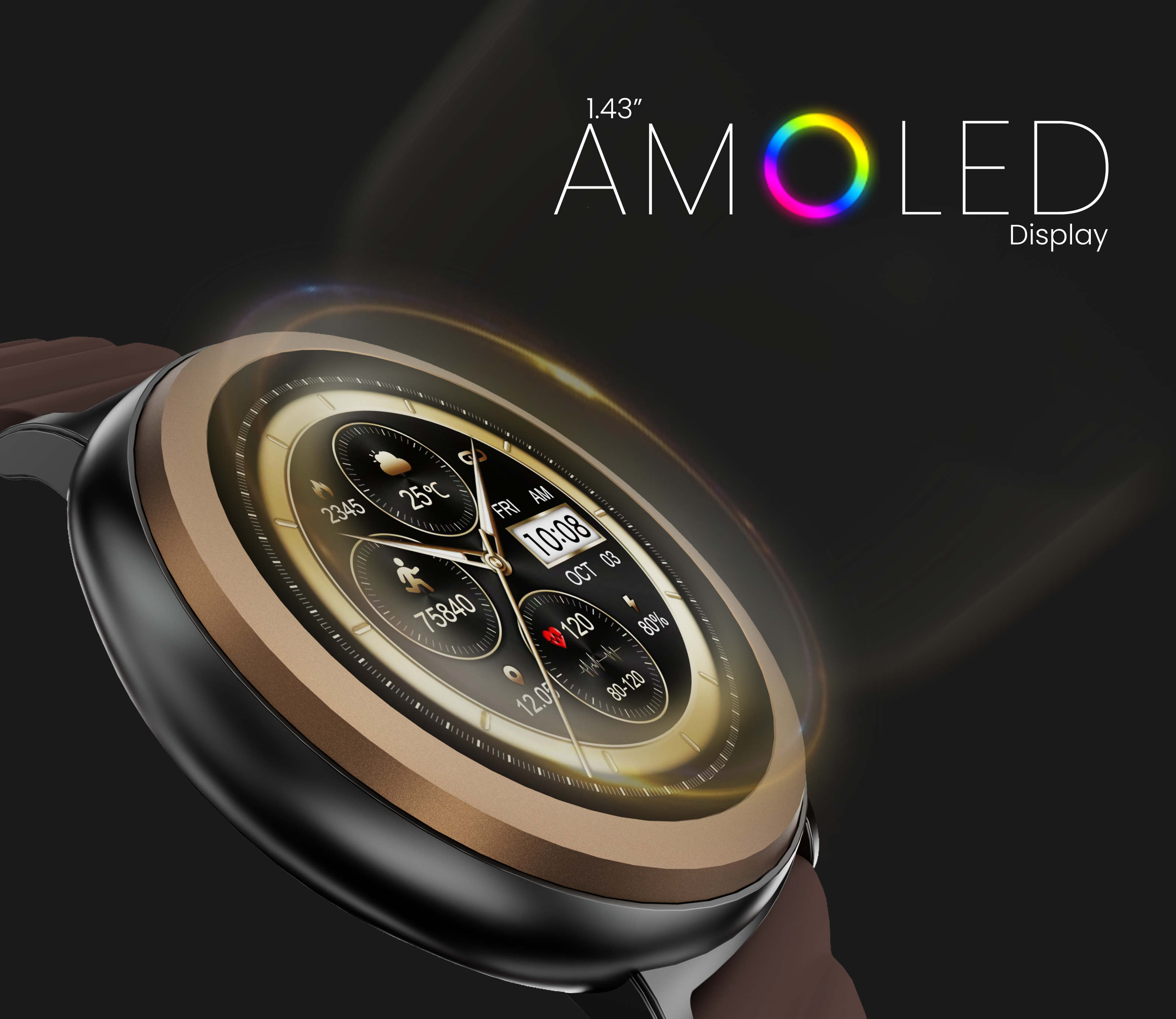 Con su impresionante pantalla AMOLED de 1.43 pulgadas, el AURORA da vida a cada detalle con colores vibrantes y una nitidez excepcional. Experimentá tu smartwatch bajo una nueva luz.