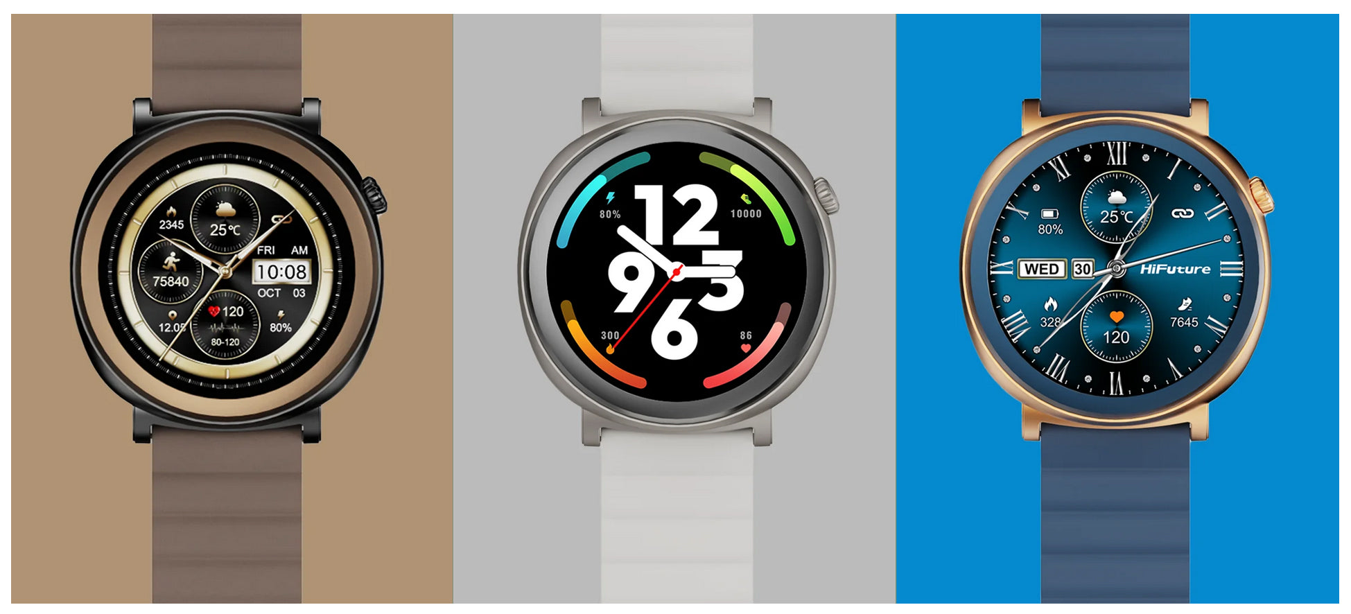 El HiFuture Aurora es un smartwatch elegante y funcional, diseñado para quienes buscan estilo y tecnología en su día a día. Disponible en tres colores (Plateado, Marrón y Azul), cuenta con correa de 22mm intercambiable y un diseño sofisticado que se adapta tanto a la oficina como a tus