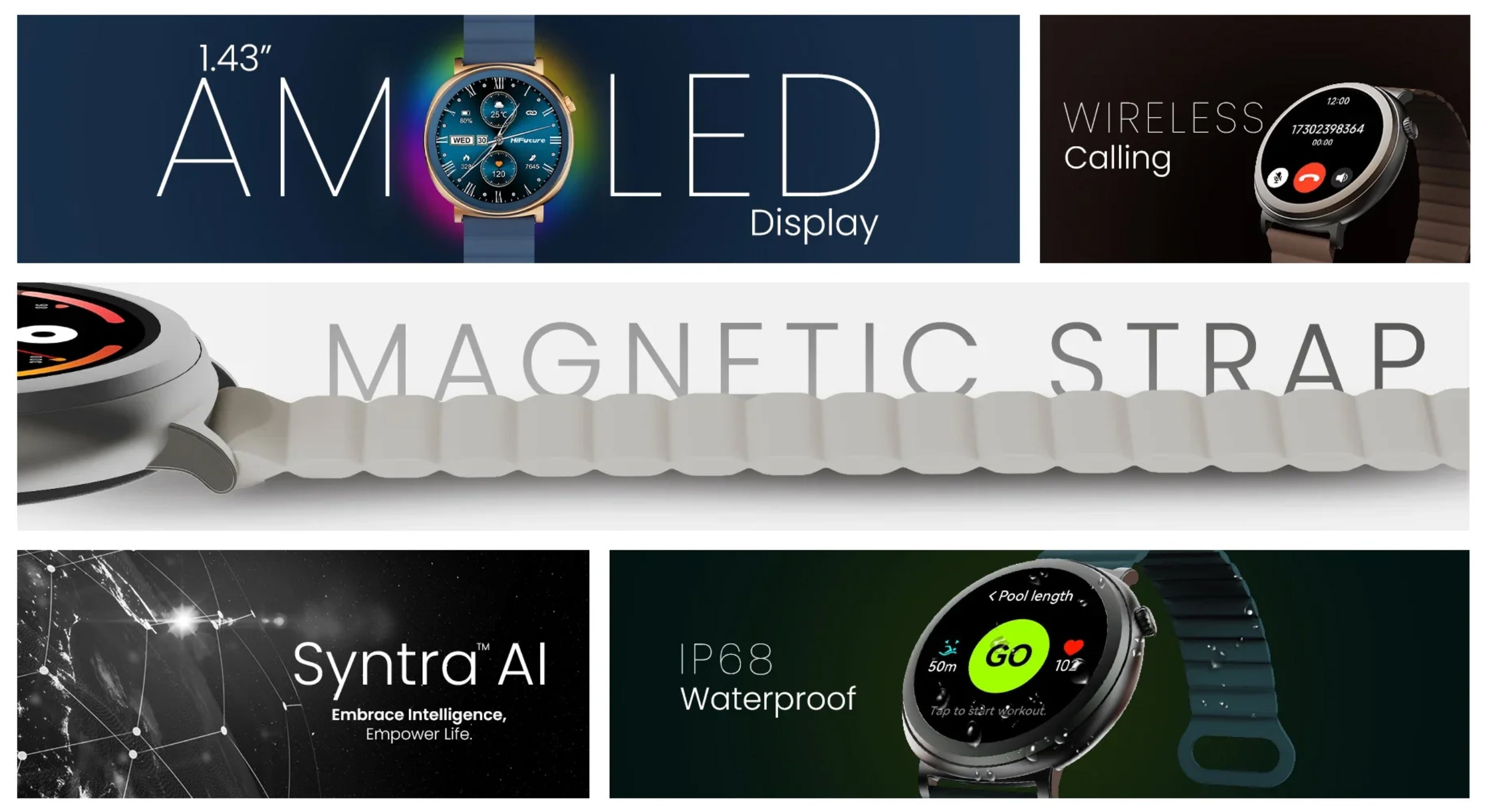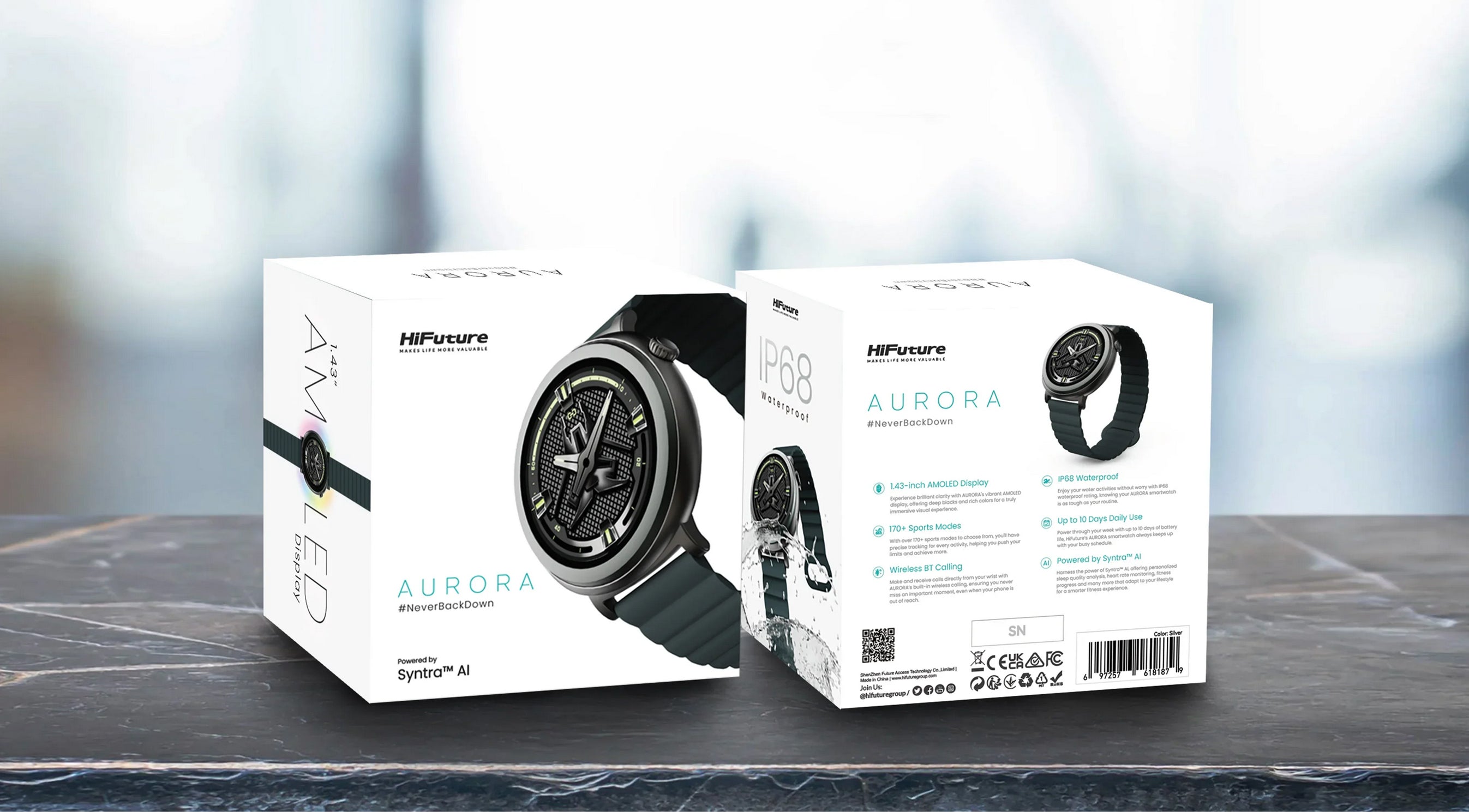 Con notificaciones inteligentes y batería de larga duración, el HiFuture Aurora es el aliado perfecto para mantener tu estilo y productividad en todo momento.