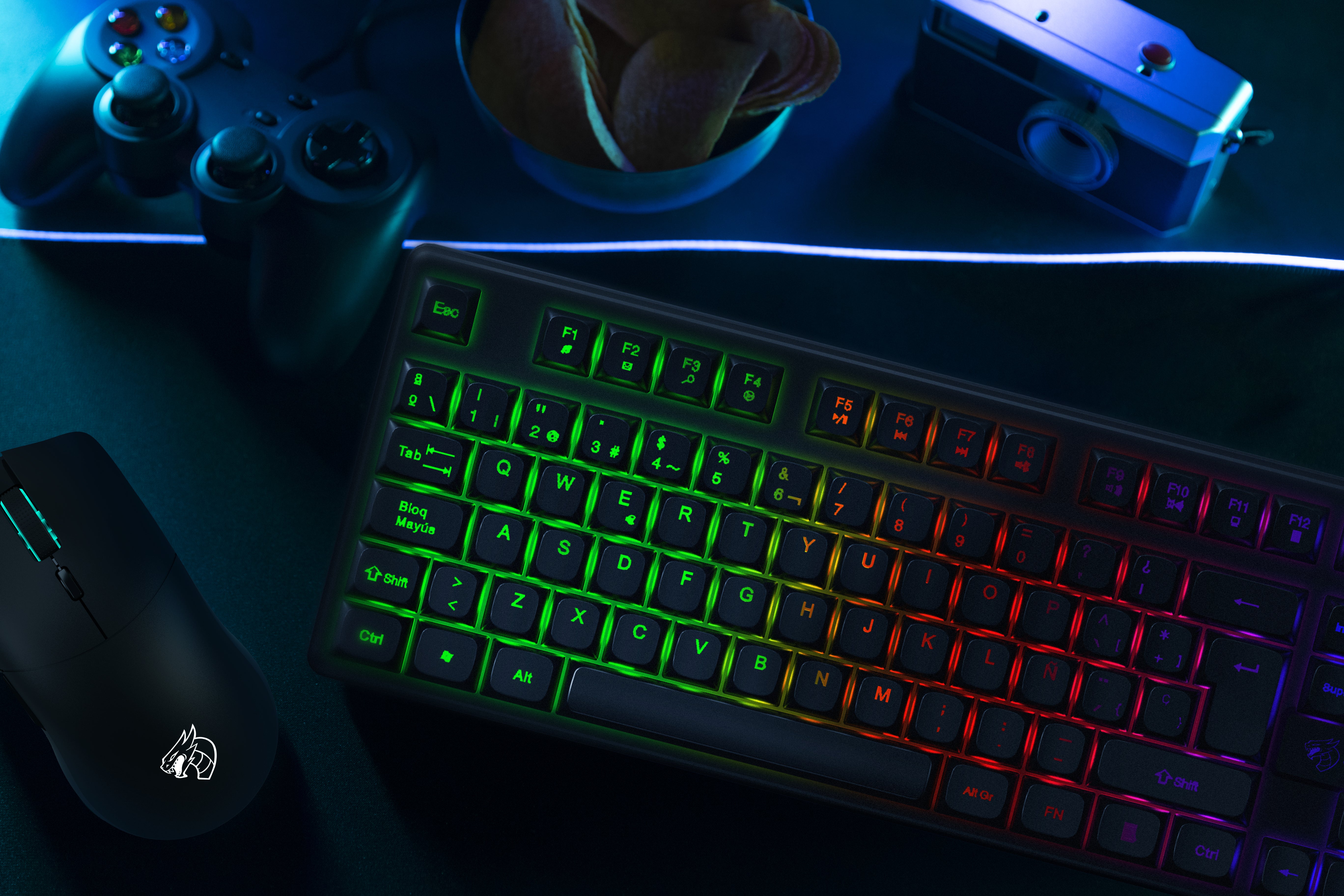El K8100 Gaming Keyboard es un teclado de membrana en español con 105 teclas, que combina practicidad y resistencia.