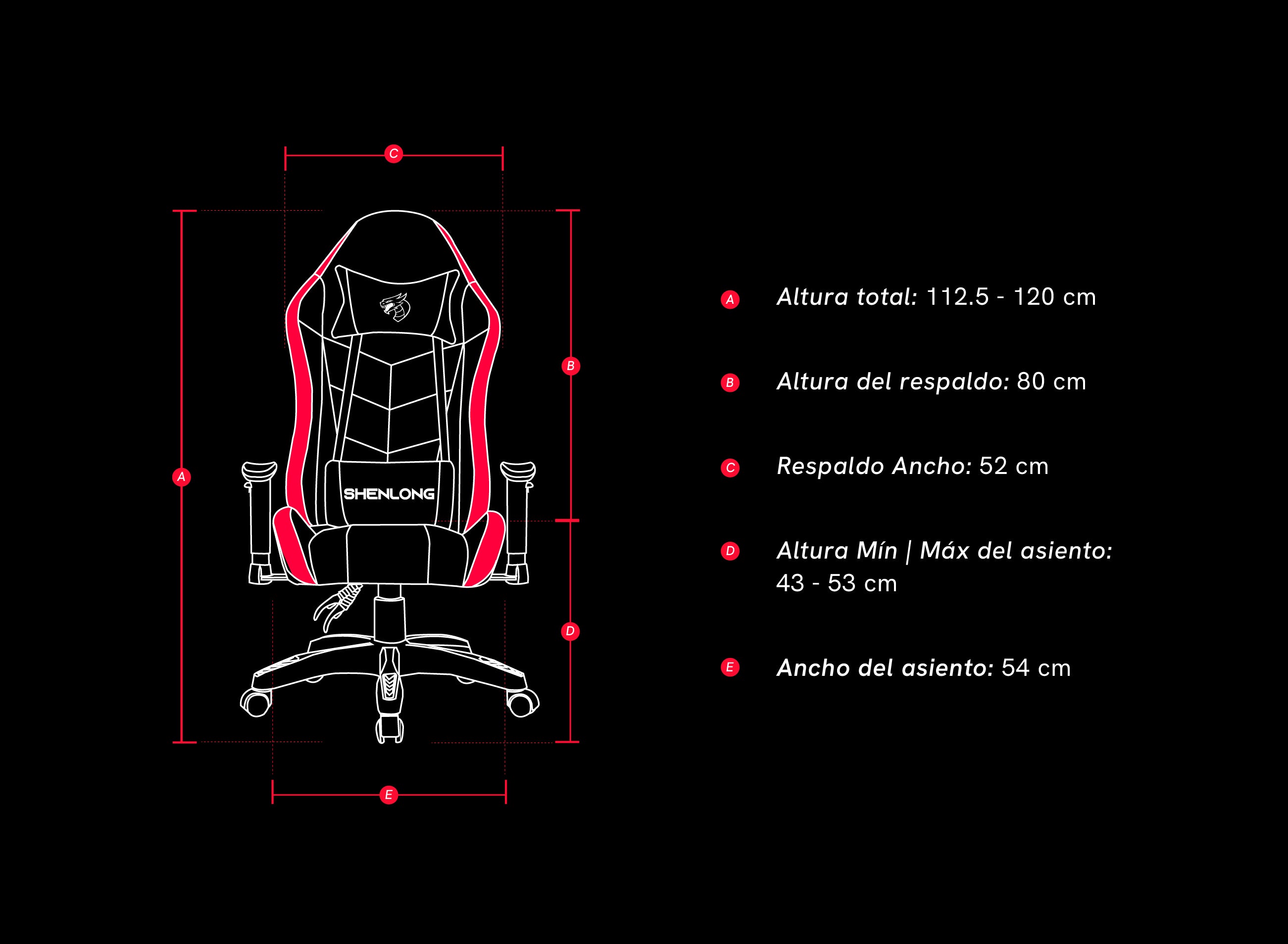 La silla gamer Shenlong modelo SH-GC150RGB ha sido diseñada pensando en quienes buscan una experiencia de confort prolongado sin sacrificar estilo ni funcionalidad. Con una altura total ajustable entre 112.5 y 120 cm, esta silla se adapta fácilmente a diferentes espacios y necesidades ergonómicas, mientras que su respaldo de 80 cm de alto y 52 cm de ancho ofrece un soporte firme y cómodo, con un ángulo de reclinación de hasta 150° para permitirte relajarte completamente entre partidas o pausas laborales.