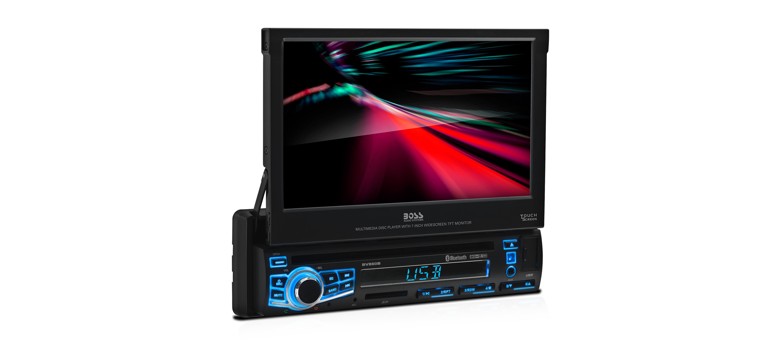 Llevá tu música al máximo con el reproductor DVD BOSS Audio Systems BV860B para tablero (Single-DIN) con pantalla táctil motorizada de 7 pulgadas.