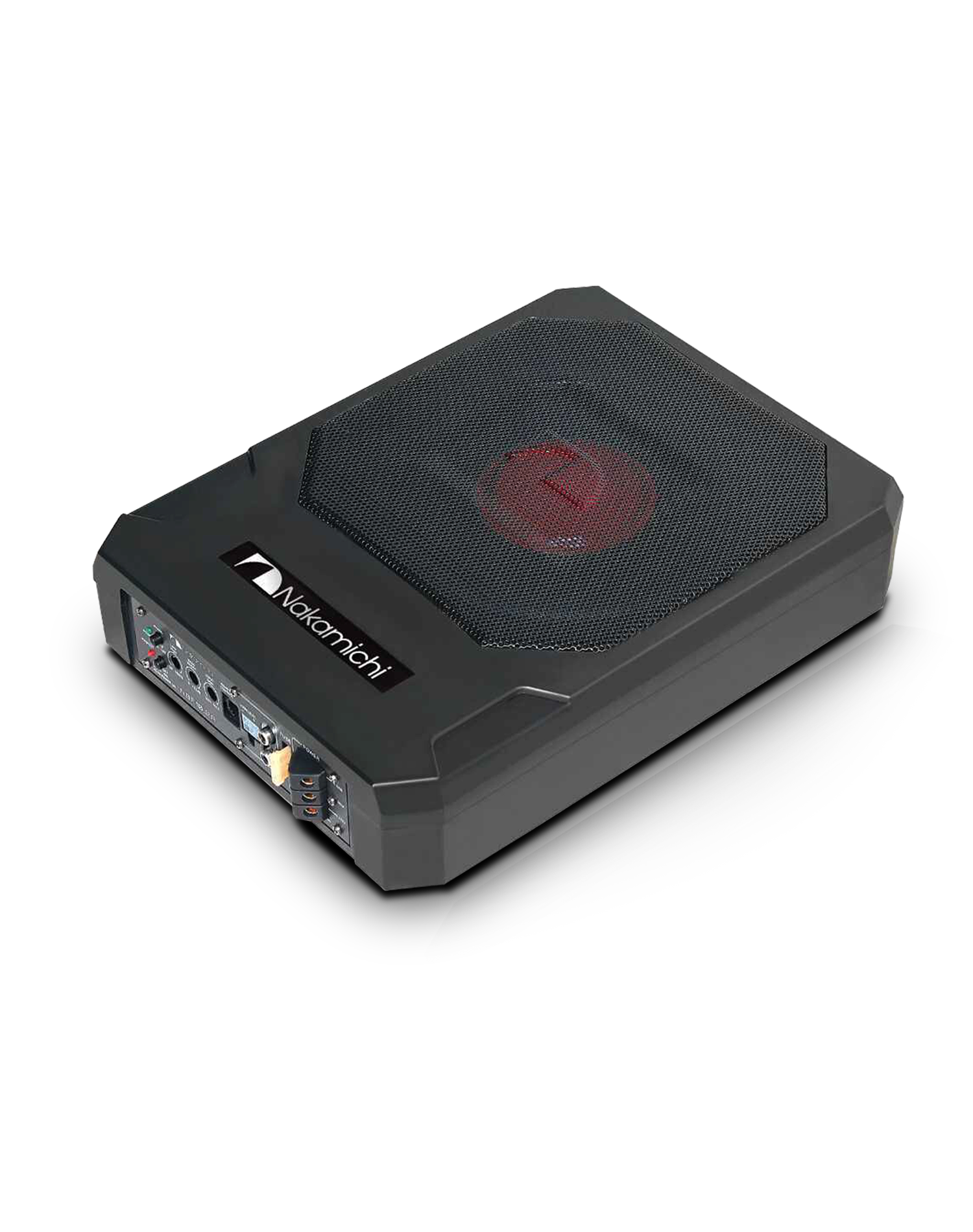 El Nakamichi NBF10.2A es un subwoofer amplificado de 10 pulgadas diseñado especialmente para instalaciones discretas bajo el asiento del vehículo.