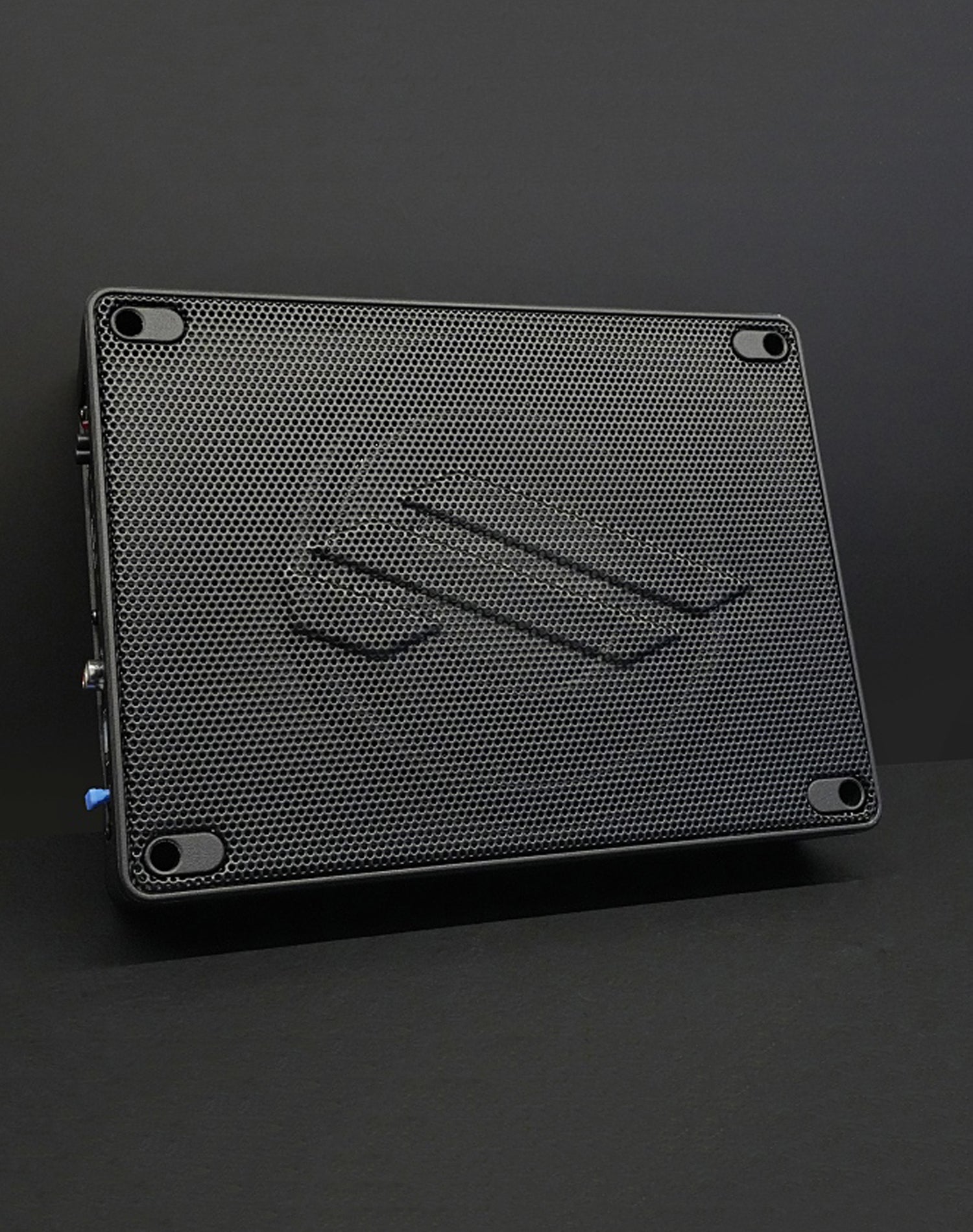 Su diseño compacto (280 x 208 x 62 mm) es una de sus mayores ventajas: puede instalarse fácilmente bajo el asiento, en la parte trasera o en espacios reducidos sin sacrificar rendimiento. A pesar de su tamaño, el subwoofer incorpora una estructura robusta y materiales de alta calidad, que aseguran durabilidad y una excelente disipación del calor.