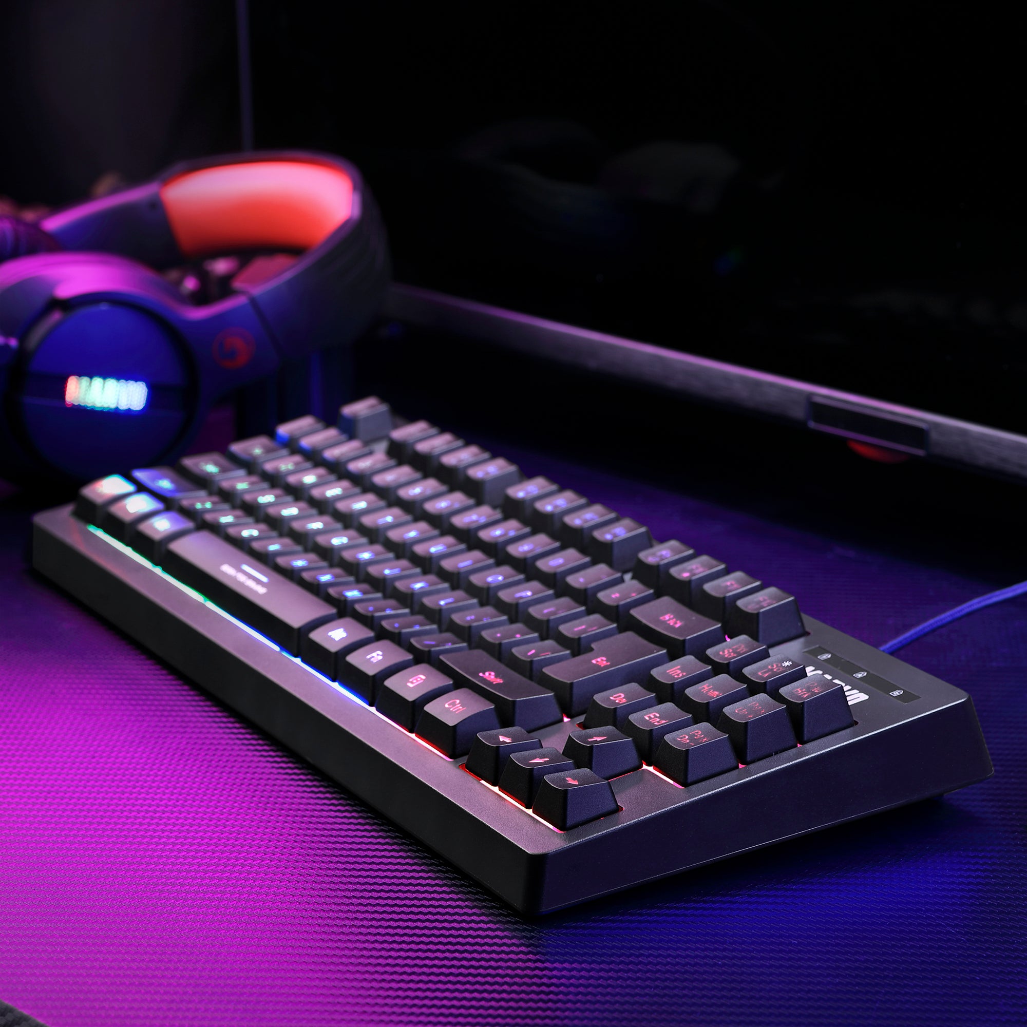 Su sistema de retroiluminación de 3 colores aporta un toque visual distintivo, combinando funcionalidad y estilo. La iluminación se distribuye de forma uniforme bajo cada tecla, permitiendo una visibilidad óptima en entornos con poca luz y creando una atmósfera inmersiva para cada sesión de juego. Además, su formato compacto y su diseño sin teclado numérico hacen que el K607 sea perfecto para setups con espacio limitado o para jugadores que buscan una mayor libertad de movimiento del mouse.