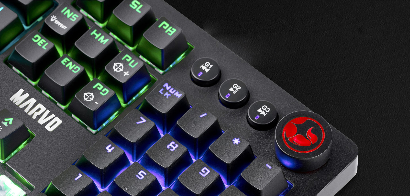 Descubre una nueva forma de jugar con nuestro teclado de alta gama. Con 3 teclas multimedia (G1-G3) y una rueda de volumen, te permiten reproducir, pausar y cambiar archivos multimedia directamente desde el teclado, lo que te garantiza una experiencia de juego sin interrupciones y de máxima fluidez.